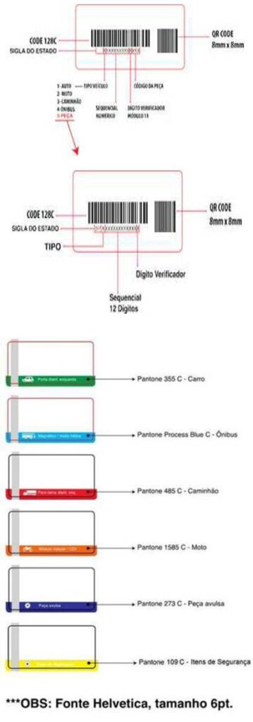 8) as etiquetas de cada cartela terão o mesmo número serial, dígito verificador e dígito relativo ao tipo de veículo, variando apenas os três últimos dígitos, de acordo com a peça em questão, com exceção da etiqueta de peça avulsa, cujo número serial será sequencial dentro da mesma cartela;